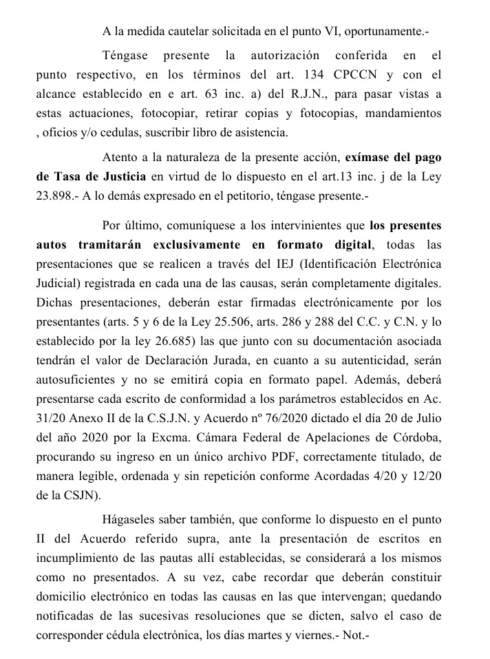 El juzgado ha intimado al ministerio para que realice el pago correspondiente en un plazo de cinco días, advirtiendo que, en caso de incumplimiento, se procederá con el embargo de bienes. También se han establecido procedimientos específicos para la presentación de escritos, enfatizando la necesidad de cumplir con los parámetros establecidos por la Corte Suprema de Justicia de la Nación (C.S.J.N.) y la normativa vigente.