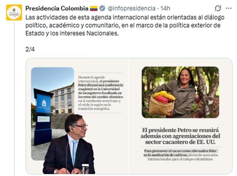Según informó la Presidencia de Colombia, Gustavo Petro desplegará en Washington una agenda intensa que combinará actividades políticas, académicas, empresariales y encuentros con la comunidad colombiana en Estados Unidos.