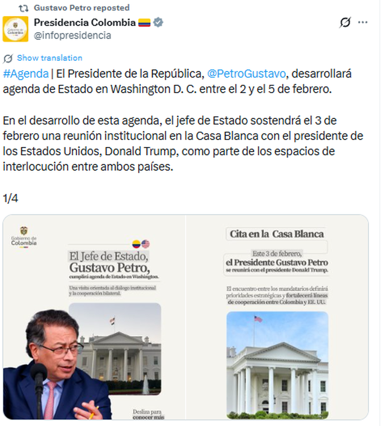 Por lo tanto, tras entrevistarse con el jefe de misión de la embajada de Estados Unidos en Colombia, John McNamara, el mandatario colombiano anunció en su cuenta de X que empezó su jornada “de comunicación intensa con el gobierno de los EEUU, con mi entrevista con el representante de negocios de los EEUU en Colombia McNamara”.