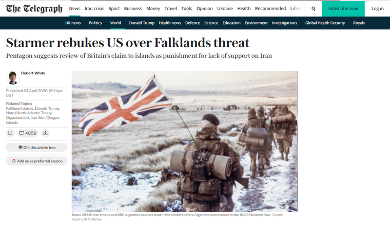 Por su parte, The Telegraph sostuvo que la filtración expone la intención de Washington de “penalizar” a miembros de la OTAN que no acompañaron la ofensiva. Entre las alternativas se menciona la revisión del respaldo a la reclamación británica sobre el archipiélago. El informe destaca que esta posibilidad implica un cambio en la relación tradicional entre ambos países.