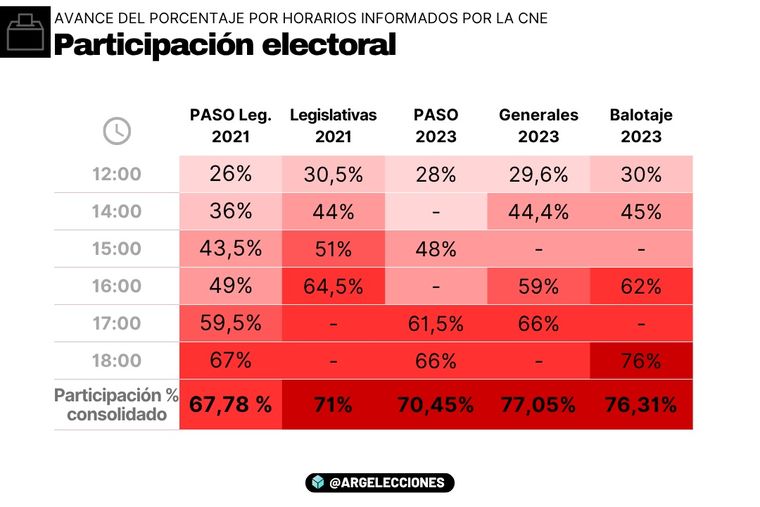 Según informó la Dirección Nacional Electoral, dependiente del Ministerio del Interior, a las 11 de la mañana ya votó el 17% del padrón electoral en todo el país.