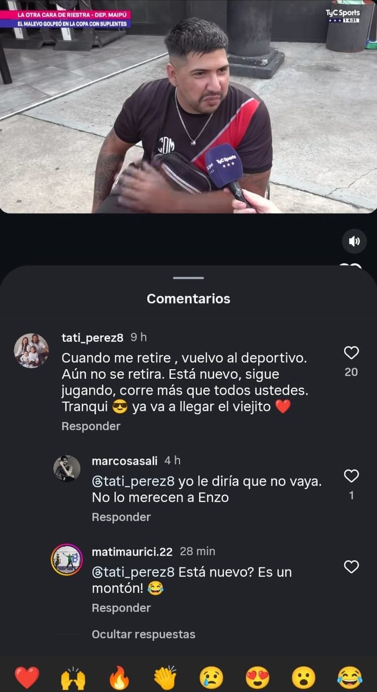 El cruce entre Enzo Pérez y los hinchas de Deportivo Maipú sumó un nuevo capítulo, esta vez lejos de la cancha y en el terreno de las redes sociales. Luego de las críticas y gestos de enojo que se escucharon en el partido ante Riestra por Copa Argentina, fue Tatiana Pérez, hermana del mediocampista mendocino, quien salió a respaldarlo públicamente.