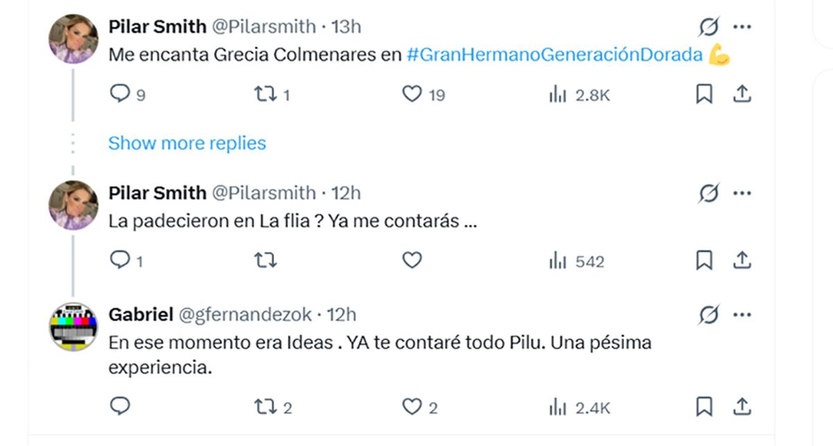El productor no se quedó ahí. Ante la consulta de otro usuario sobre cómo era trabajar con la actriz, detalló: “Es bravisima. A mí me pidió pintar la pared de una de las habitaciones del hotel, frutas de estación, chofer 24 horas... y ahora a GH sin escala”. Y agregó con ironía: “Yo gestioné su participación, Dios mío. Pobre la producción”.